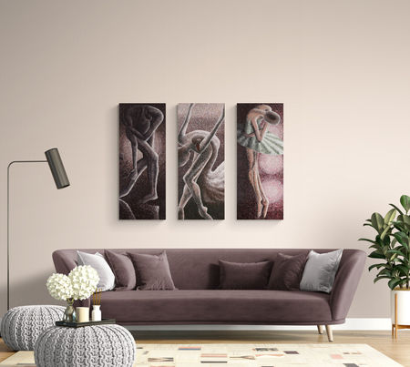 ציור אחד מתוך סדרה של שלושה ציורים. ציור של בלרינה בשמלת טוטו בנקודות בעבודת יד, בצבעי אקריליק על קנבס. נמכר כהעתק מודפס על נייר כותנה איכותי או על קנבס, בכל גודל ולפי הזמנה אישית. גודל מקורי 40/100 ס"מ. ניתן להזמין הדפס איכותי בכל גודל בפרופורציה זהה למקור. להצעת מידות ומחיר צרו קשר.