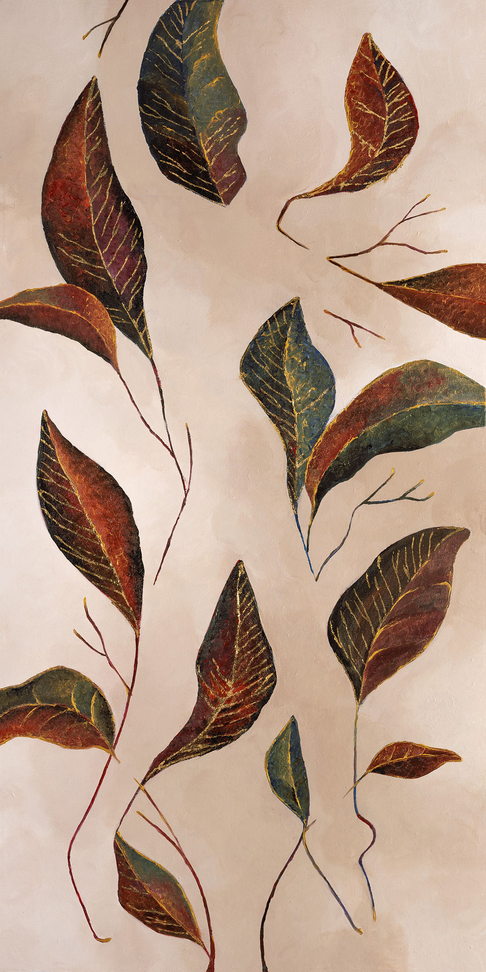ציור של בלרינה עשויה עלים עם עיטורי זהב וצבעים בהירים בעבודת יד, בצבעי אקריליק על קנבס. נמכר כהעתק מודפס על נייר כותנה איכותי או על קנבס, בכל גודל ולפי הזמנה אישית. גודל מקורי 40/80 ס"מ. ניתן להזמין הדפס איכותי בכל גדול בפרופורציה זהה מקור. להצעת מידות ומחיר צרו קשר.